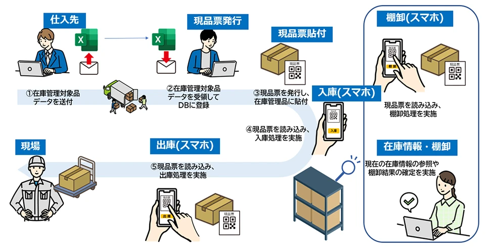 現場で使いやすい在庫管理を実現します。QRコードで簡単操作、リアルタイムで正確な在庫把握を可能にします。
