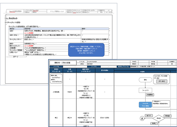 既存バインダの整理・分類を行い、開発基準や運用ルールを再確認。